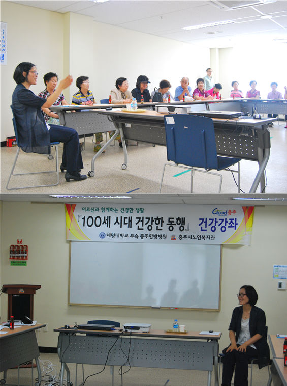 100세 시대에 어르신들의 건강한 노후를 위해 충주시노인복지관에서는 세명대 부속 충주한방병원과 함께 4월에 이어 6월에도 ‘체질별 건강관리’ 내용으로 복지관 3층 2프로그램실에서 건강강좌를 개최했다.