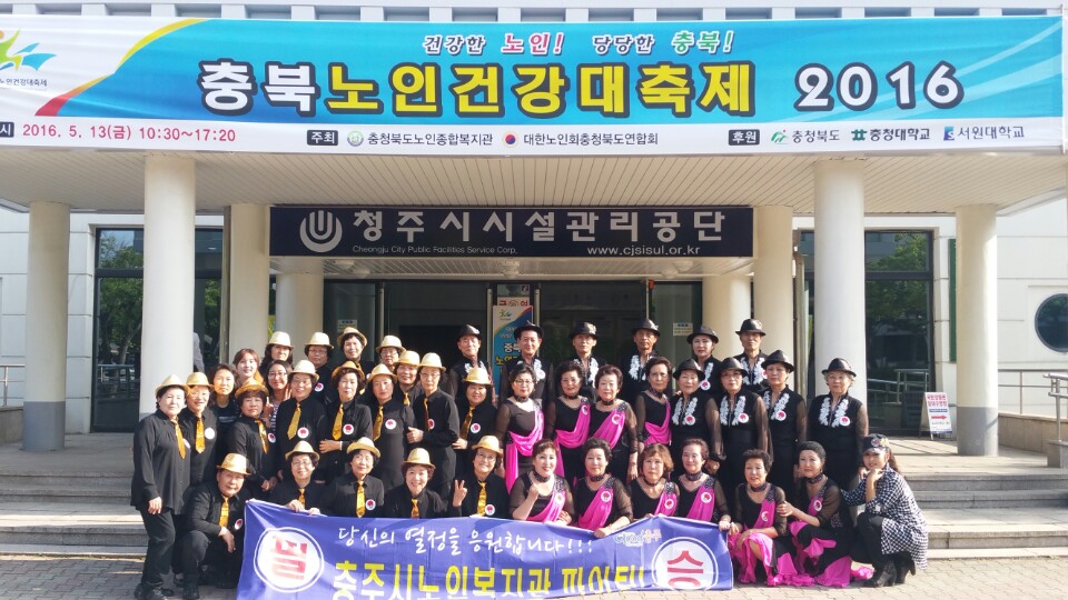 2016년 5월 13일(금) 「충북노인건강대축제 2016」에 남부분관의 실버에어로빅"애플시니어"팀과 본관 댄스 스포츠 동아리반 "언제나 청춘"팀이 참가하였습니다.