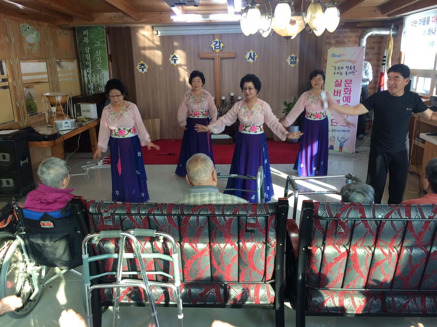 2017년 11월 28일 충주시노인복지관 문화예술공연팀은 로뎀나무요양원에 방문하여 그동안 복지관에서 갈고 닦은 공연 실력을 뽐내는 시간을 가졌습니다. 자원봉사자와 요양원 어르신이 하나되어 즐겁고 보람 있는 시간을 만들었습니다. 협조해주신 로뎀나무요양원 어르신 및 관계자 분들과 문화예술공연 봉사자님들에게 감사드립니다.