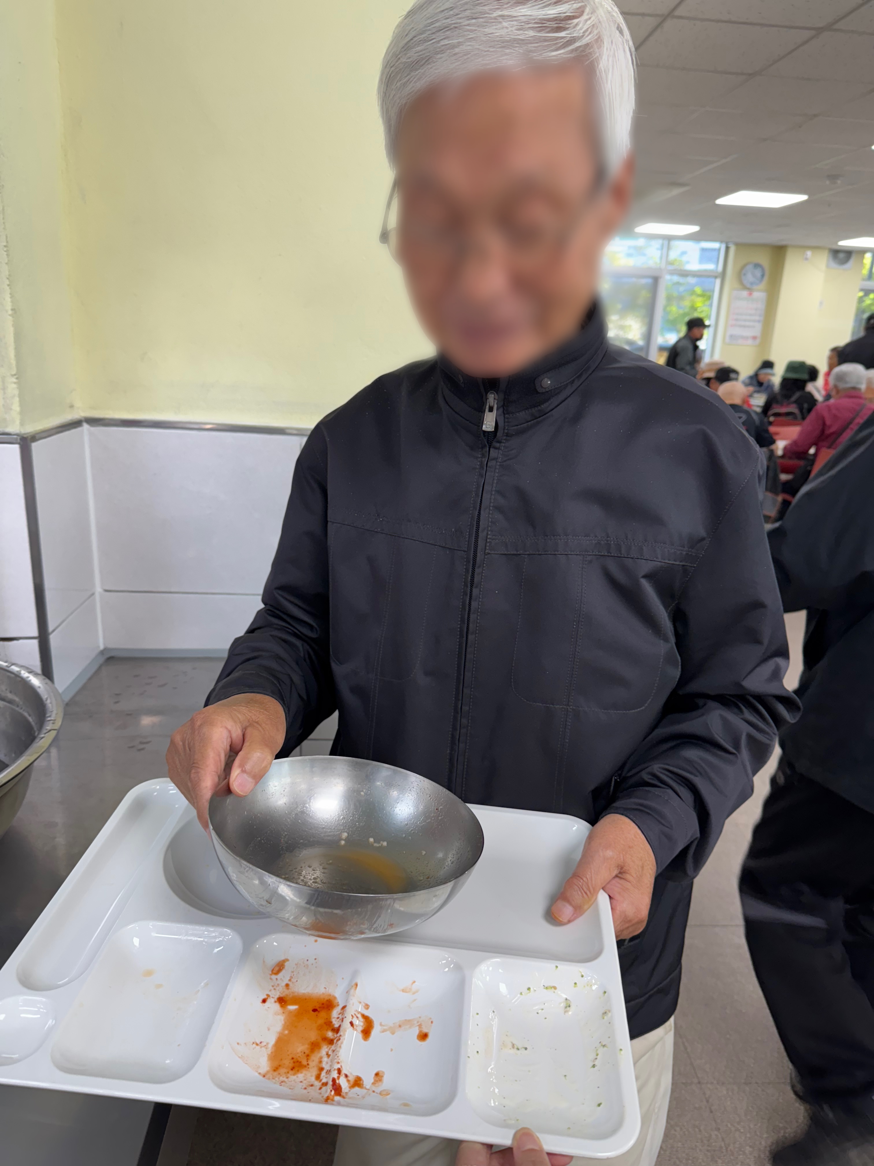 많은 어르신들이 남김없이 식사를 하며 캠페인에 동참해주신 덕분에 환경을 살리고, 후식을 받으며 즐거운 식사시간이 되었습니다.