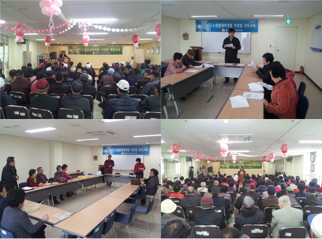 우리복지관에서는 노인일자리사업 5개 사업단의 참여 어르신 352명을 대상으로 알찬 직무교육을 실시하였습니다.