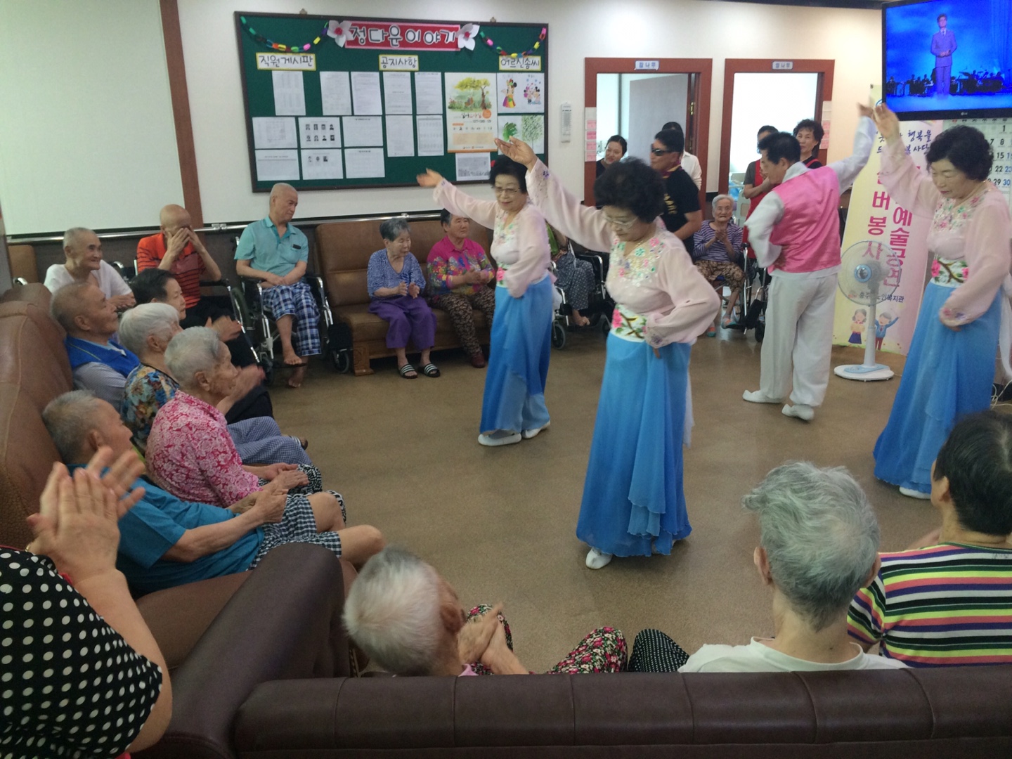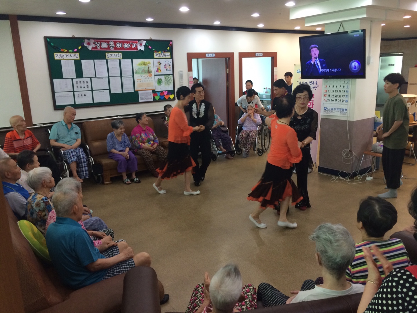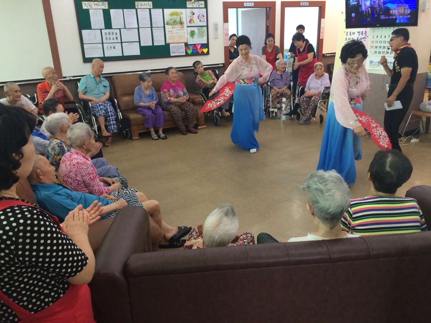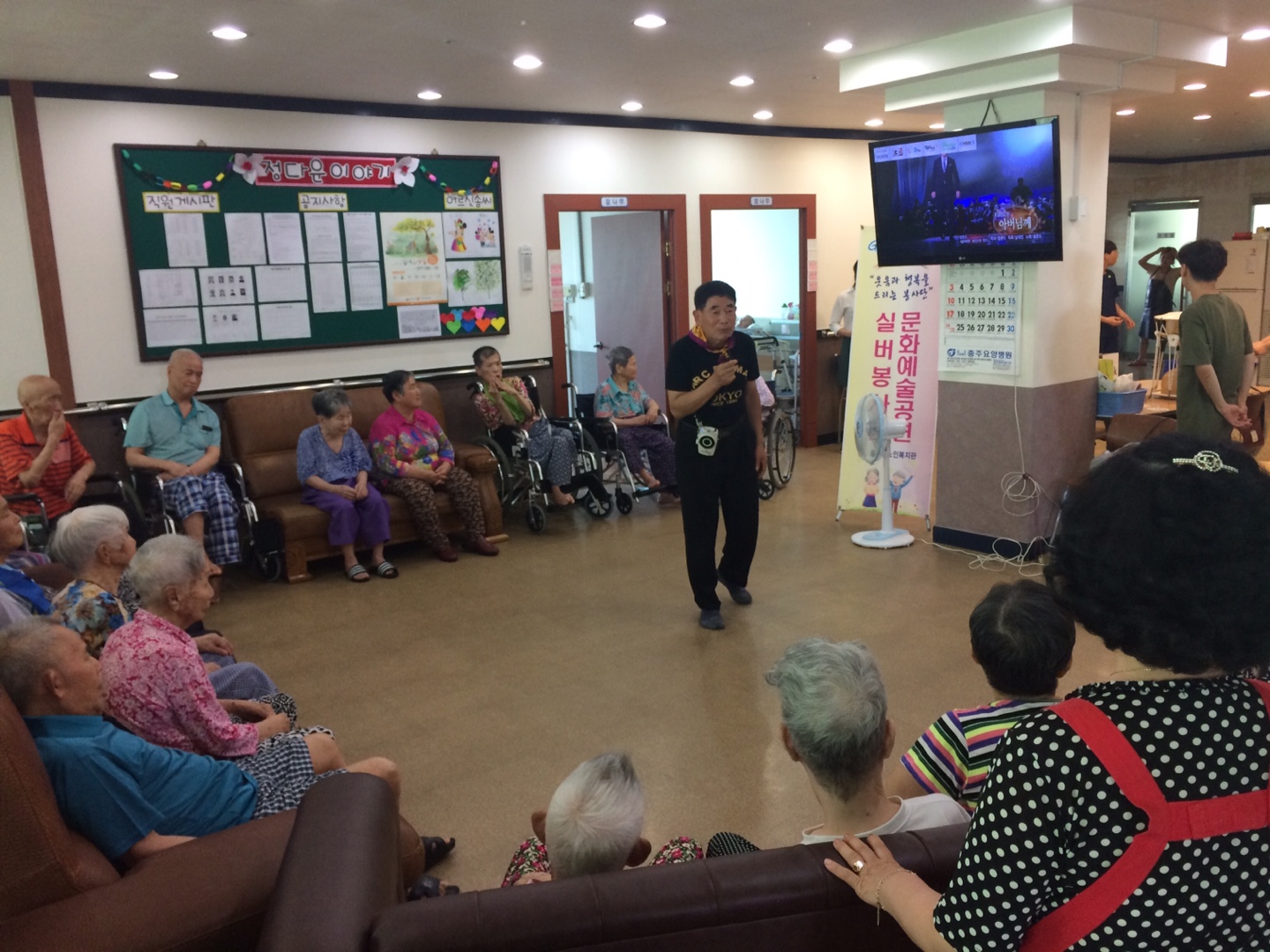 7월 21일 충주시노인복지관 문화예술공연팀은 정다운 요양원을 방문하여 그동안 복지관에서 갈고 닦은 공연 실력을 뽐내는 시간을 가졌습니다. 자원봉사자와 요양원 어르신이 하나되어 즐겁고 보람 있는 시간을 만들었습니다. 협조해주신 정다운 요양원 입소자 어르신 및 관계자 분들과 자원봉사자분들에게 감사합니다.
