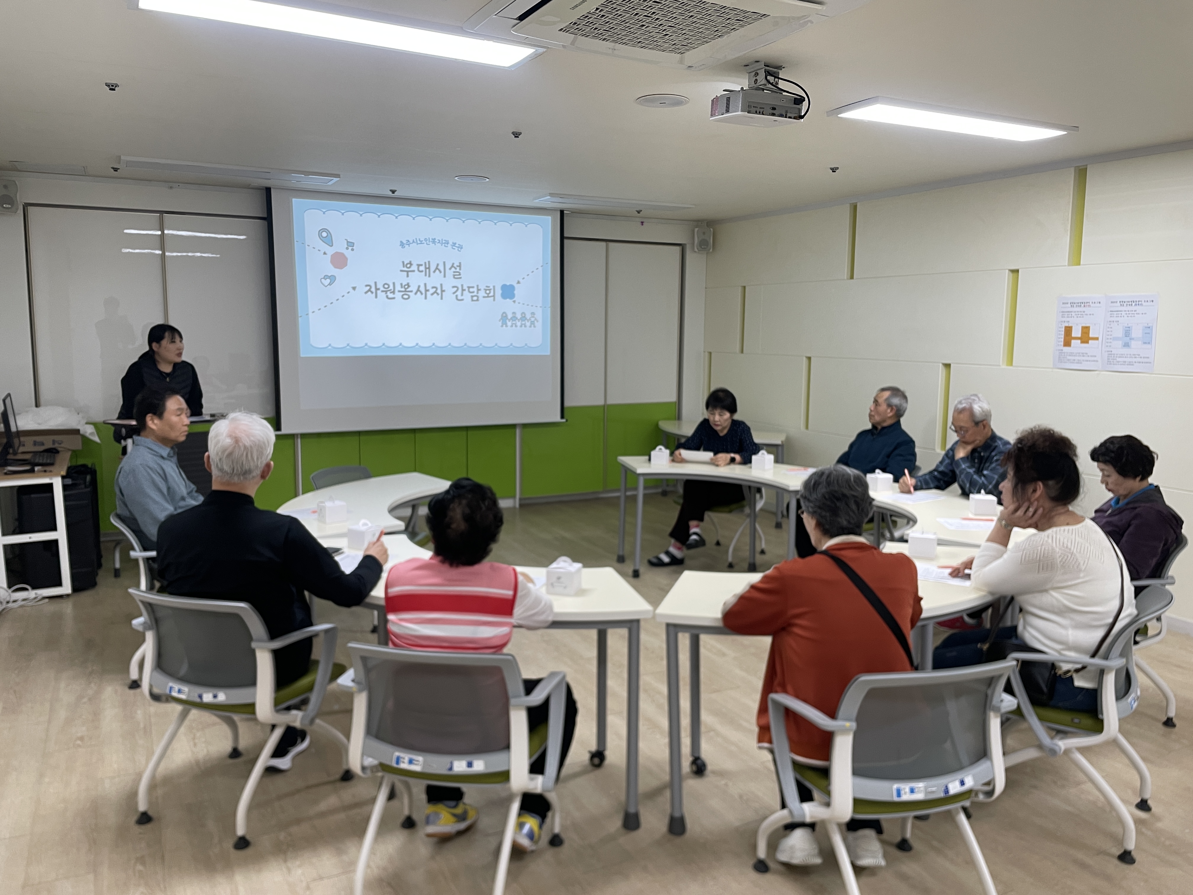 2025. 4. 17. ~ 4. 29.에 걸쳐 충주시노인복지관 본관에서는 자원봉사자 팀별 간담회를 진행하였습니다.