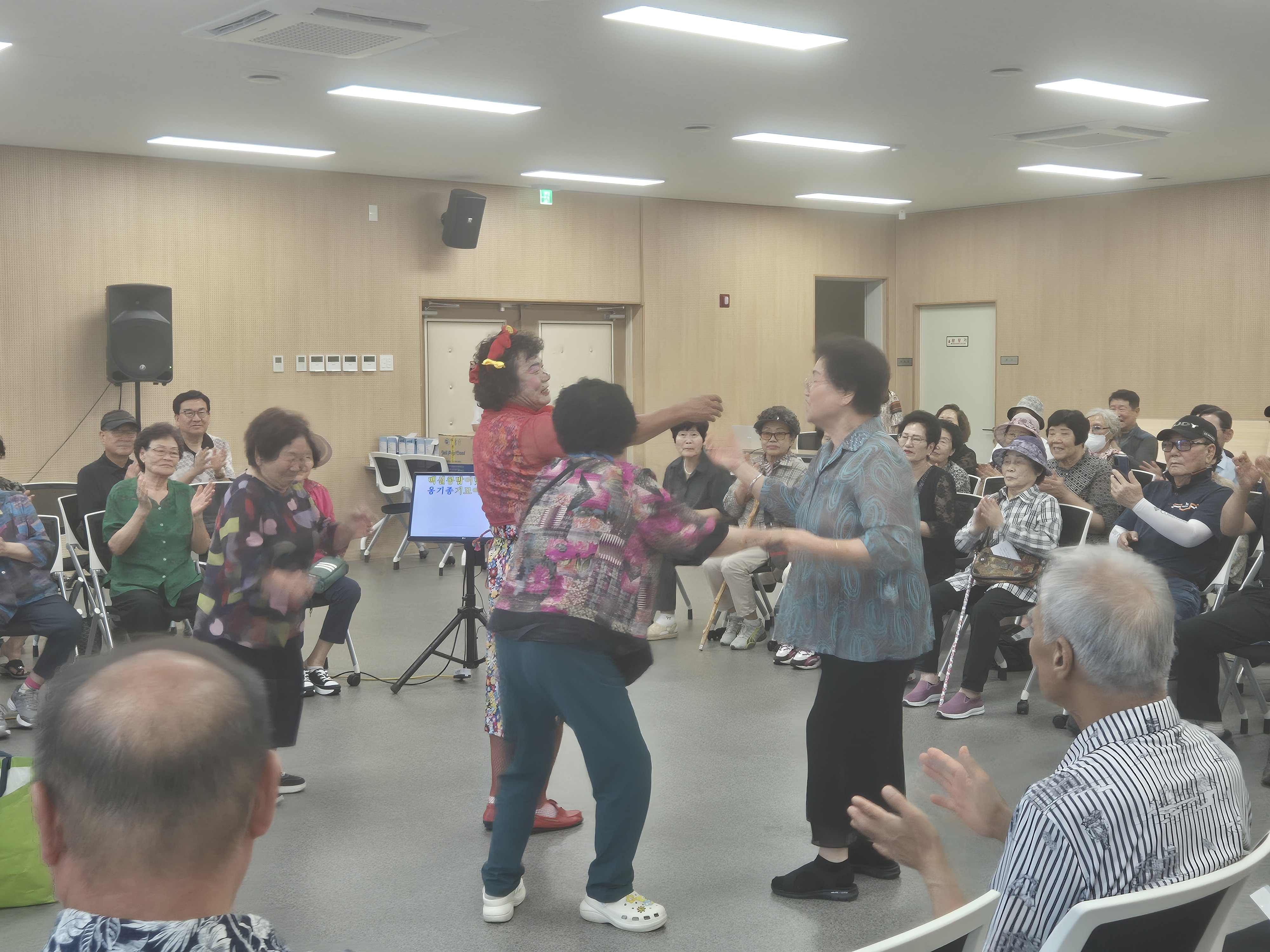 박명나 강사님과 장구가 좋다 팀, 양창복 강사님의의 화려한 공연으로 어르신들이 현장에서 행복한 시간을 보냈습니다.
