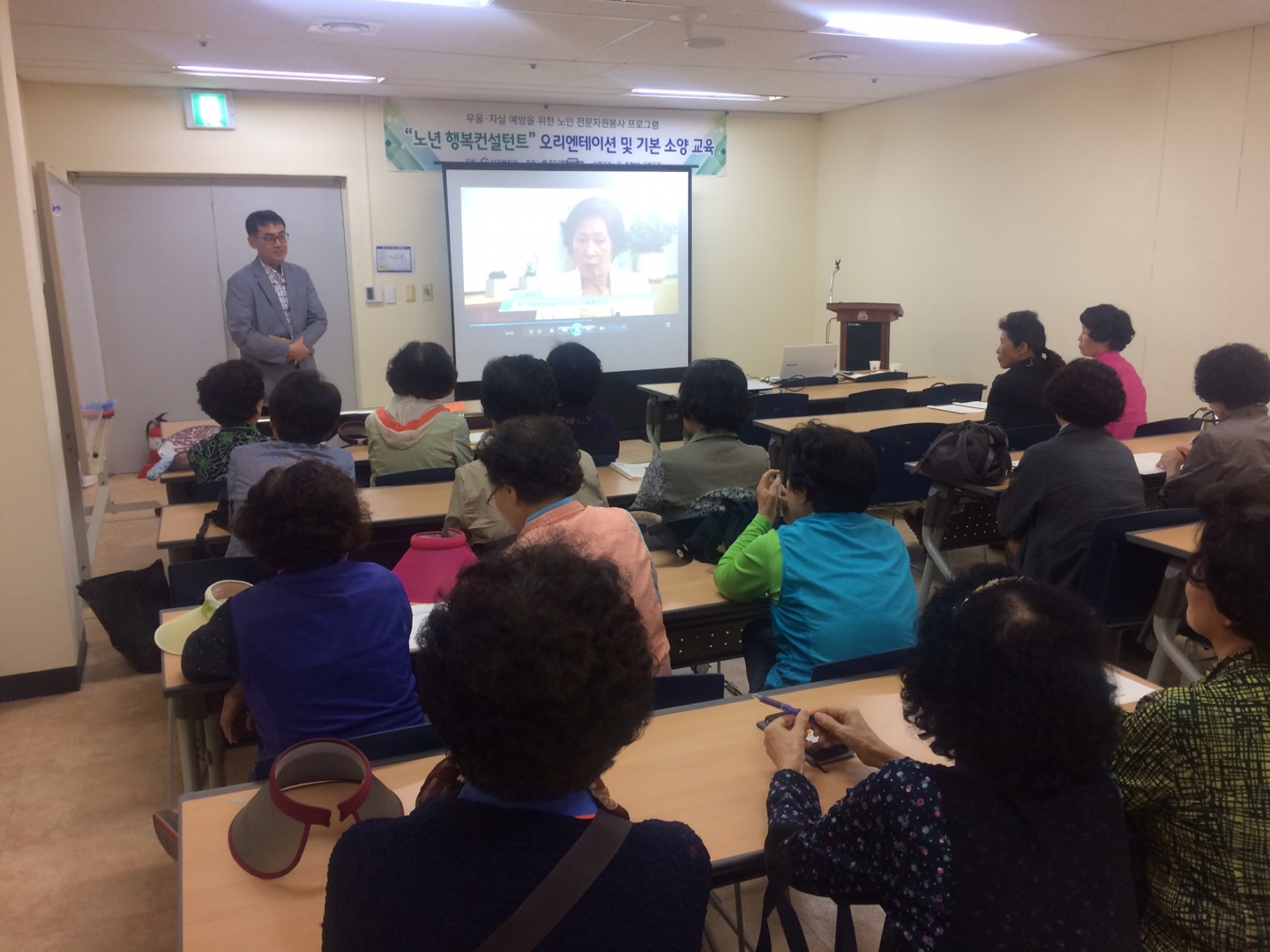 우울, 자살 예방을 위한 노인 전문자원봉사 프로그램 "노년 행복컨설턴트" 오리엔테이션 실시