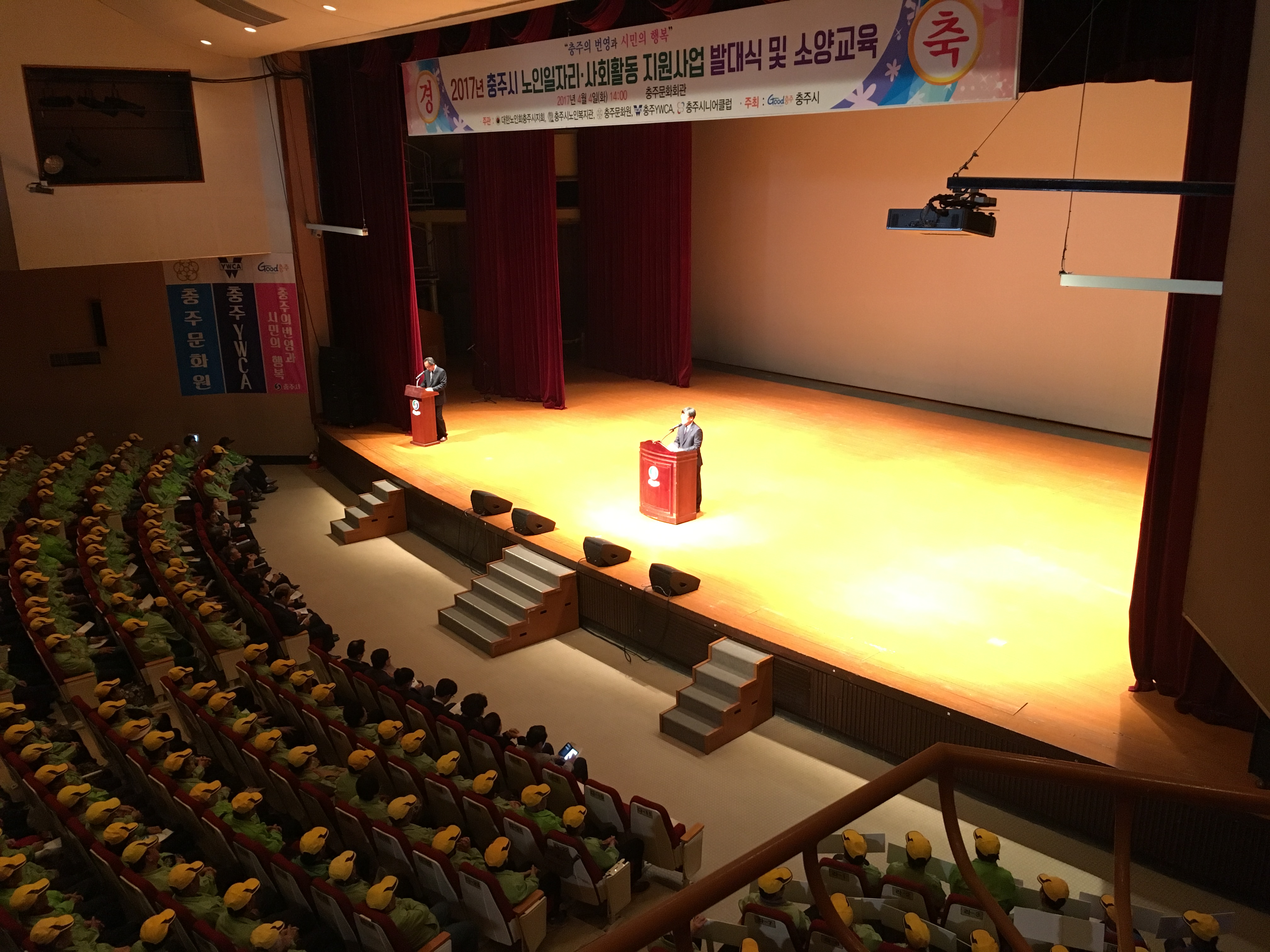4월 4일 충주문화회관에서 1000여 명의 사업 참여자가 참석한 가운데 2017년 노인일자리 및 사회활동 지원사업 발대식 행사를 가졌다.