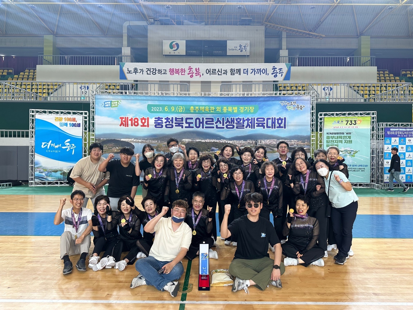 충청북도체육회 주체로 6월 9일(금) 제18회 충청북도어르신생활체육대회에 남부분관 충주시체육회 에어로빅반에서 체조(생활체조)부분 1등을 수상하였습니다.