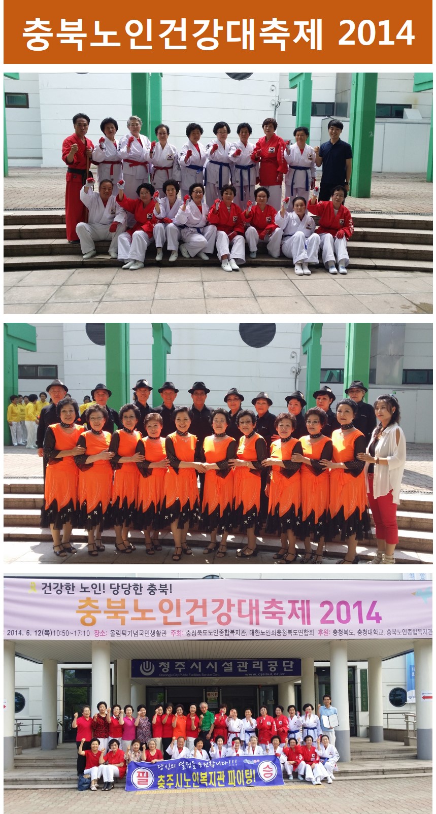우리복지관 공수도팀이 지난 12일 충청북도노인종합복지관과 대한노인회충청북도연합회가 공동으로 주최한 「충북노인건강대축제 2014」에 참가하여 무예부문에서 우수상을 수상하셨습니다!!