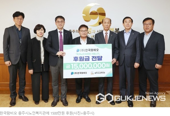 (주)한국팜비오(회장 남봉길)는 7일 지역 내 홀몸노인들의 따뜻한 겨울나기를 위해 충주시노인복지관(관장 김웅)에 후원금 1,500만 원을 전달했다.